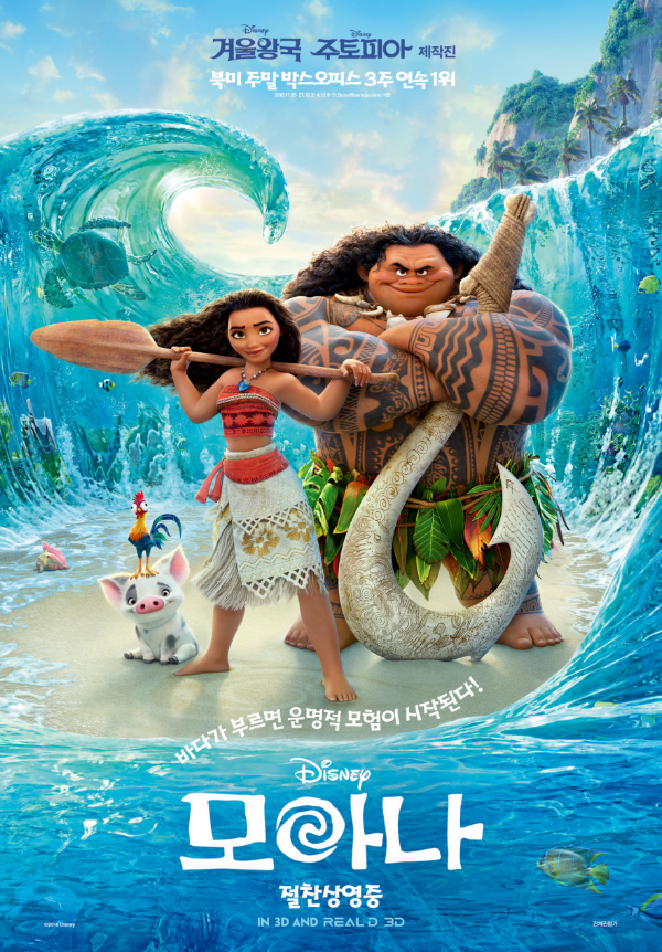 주연 (목소리): 아우이 크라발호 (모아나 역), 드웨인 존슨 (마우이 역)