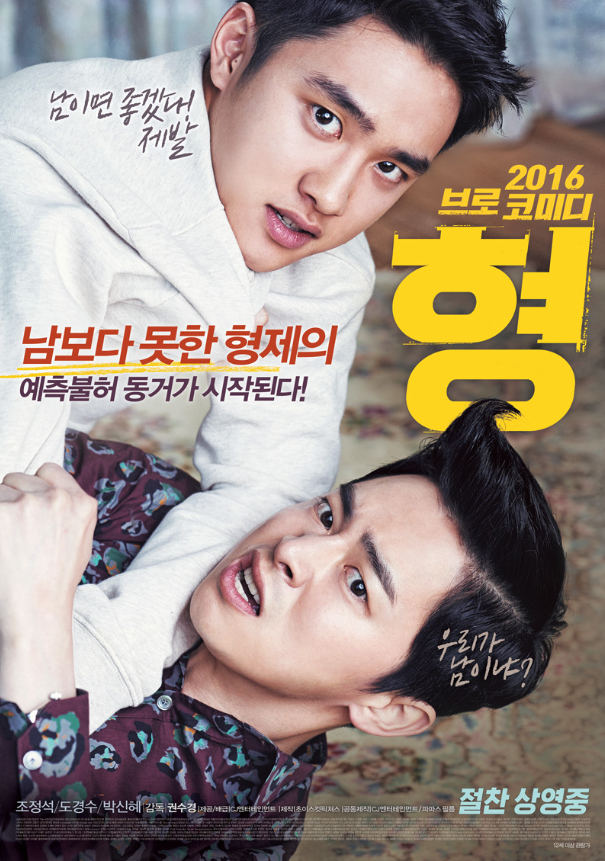 영화 '형'은 사기 전과 10범의 형 고두식(조정석)과 촉망받는 유도 국가대표 선수였지만 불의의 사고로 시력을 잃게 된 동생 고두영(도경수)의 예측 불가능한 동거를 그린 코미디 드라마 영화다. 사기죄로 교도소에 수감되어 있던 두식은 동생 두영의 실명을 빌미로 눈물의 가석방을 받아내고 15년 만에 집으로 돌아오게 된다. 두식의 가석방 목적은 오직 자신의 이익을 위해서였고, 두영은 갑작스러운 형의 등장과 그의 뻔뻔한 행동에 분노하며 형을 받아들이지 못한다.